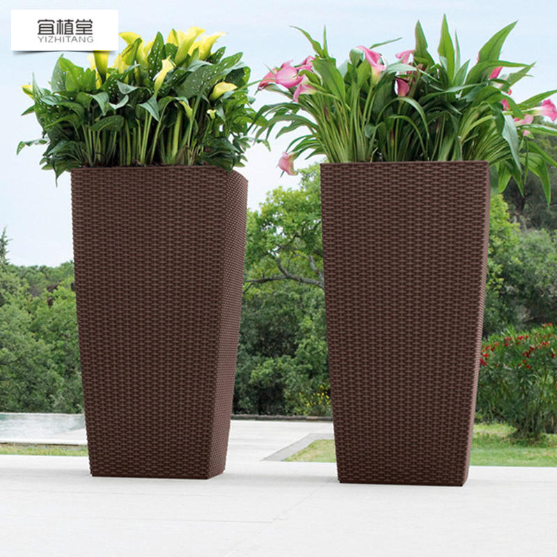 6002 Automatic Water Absorbing Imitation Vine Weaving Flower Pot Creative Multi Square High footed Flower Pot Celebration Hall Large